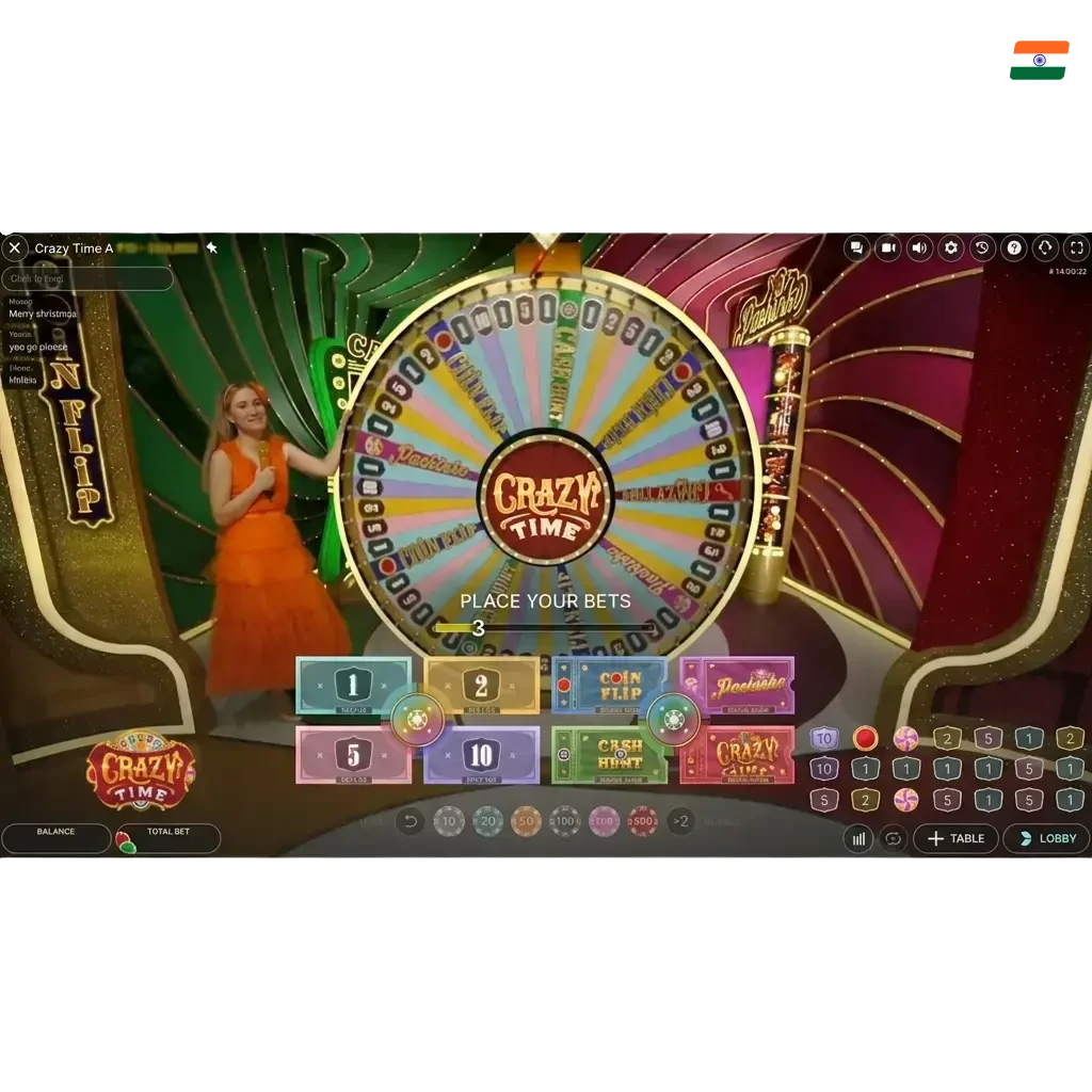 Go to the Casino section, search for Crazy Time, and click to start a live round. Your balance is ready to use.